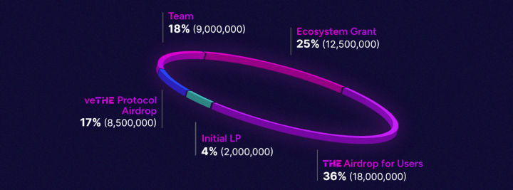 The initial launch is made up of tokens from Initial LP, $THE Airdrop for Users, and veTHE Protocol Airdrop.