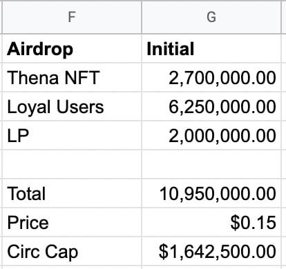 The Team portion will be locked, the Ecosystem Grant is for future collaborations, and some of the airdrop is in $veTHE making the circulating MC on launch quite small.