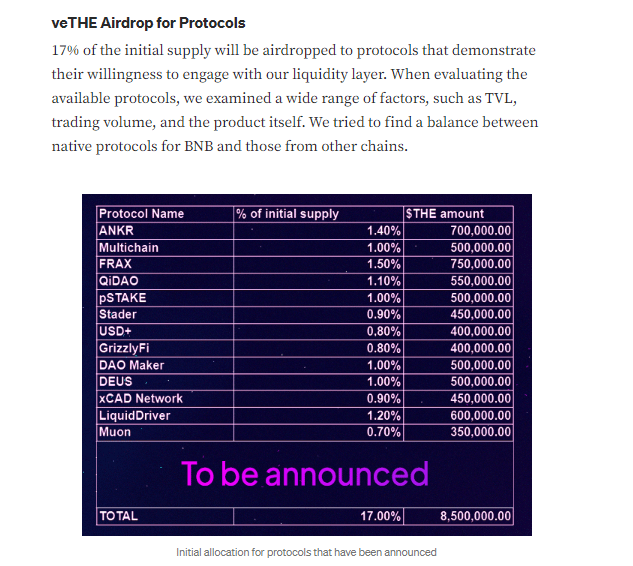 17% of the initial $veTHE supply is held for partner protocols across some for the biggest names in DeFi.
