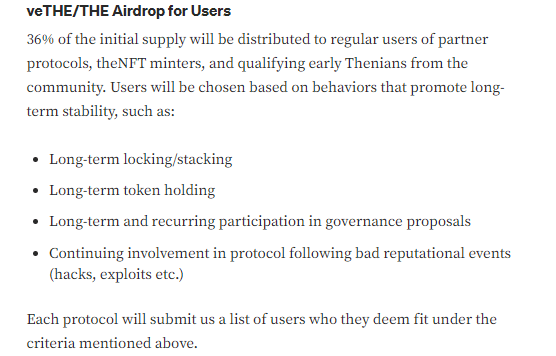 36% of the initial supply will be set aside for users of these partner protocols to hopefully pull in a large user base. If you use any of the above protocols, check in to see if you'll be eligible for the airdrop of $THE / $veTHE.