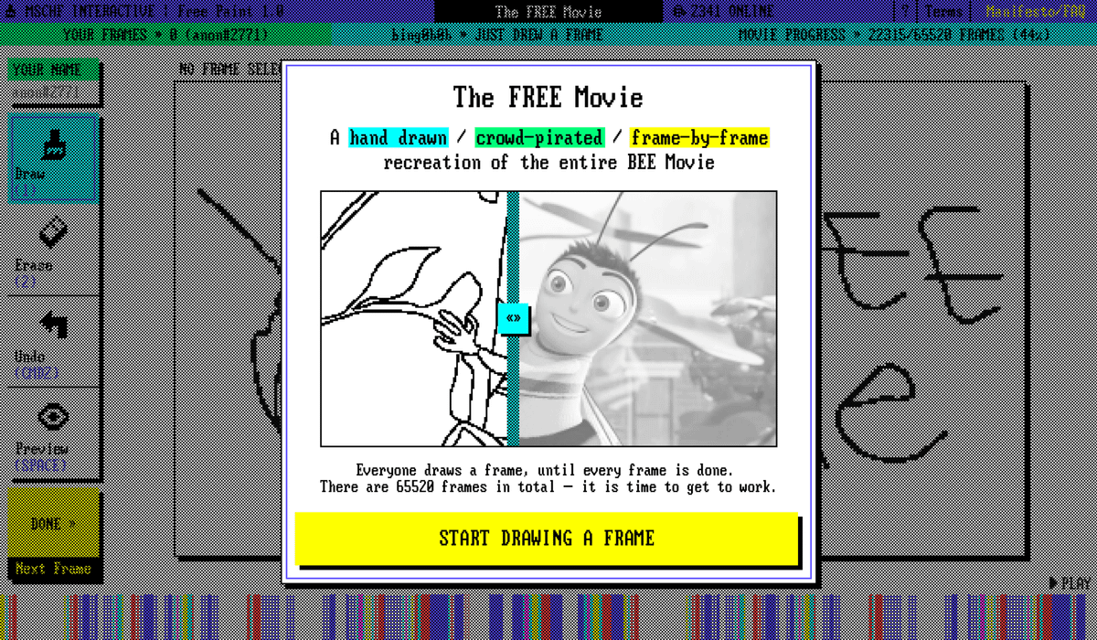 Il vous suffisait de vous y connecter pour vous voir attribuer une image du film, puis tout ce que vous aviez à faire était de la redessiner à l'aide de l'outil fourni (qui ne vous permet intentionnellement pas de créer quelque chose de visuellement plaisant).