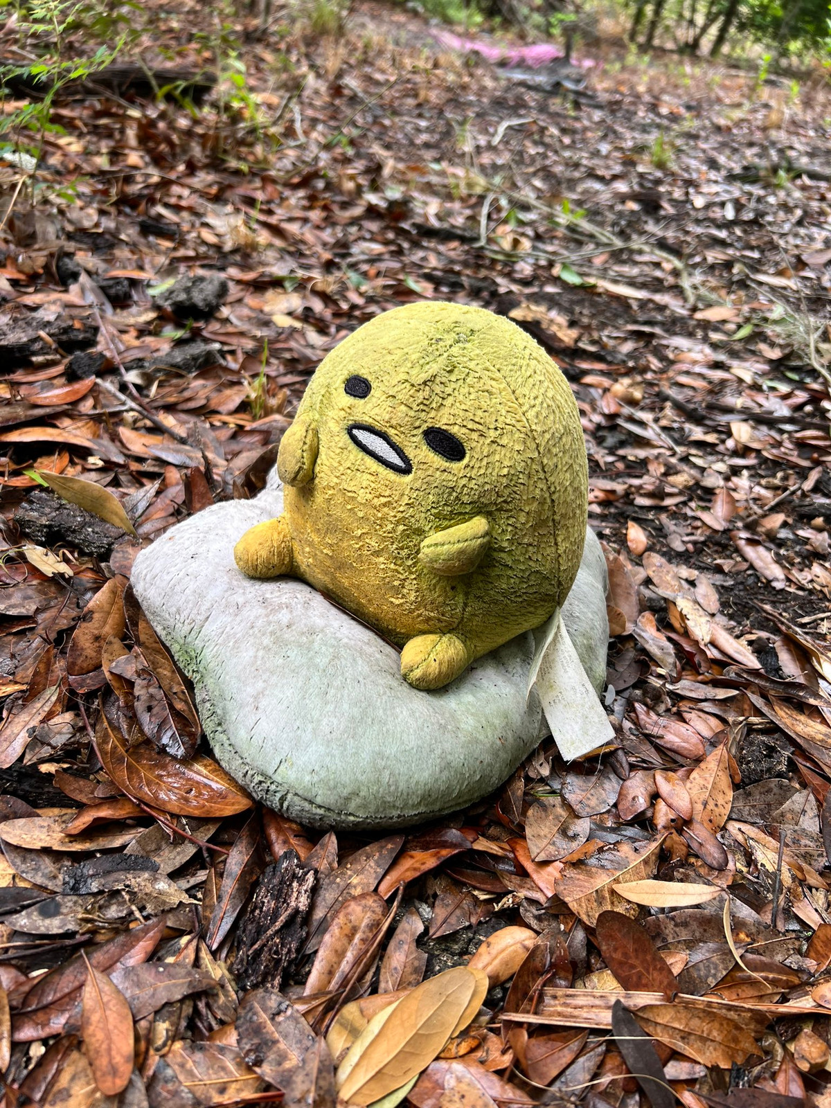 La peluche représente Gudetama, un personnage de dessin animé japonais. Il appartient à Sanrio, la société qui a créé Hello Kitty.