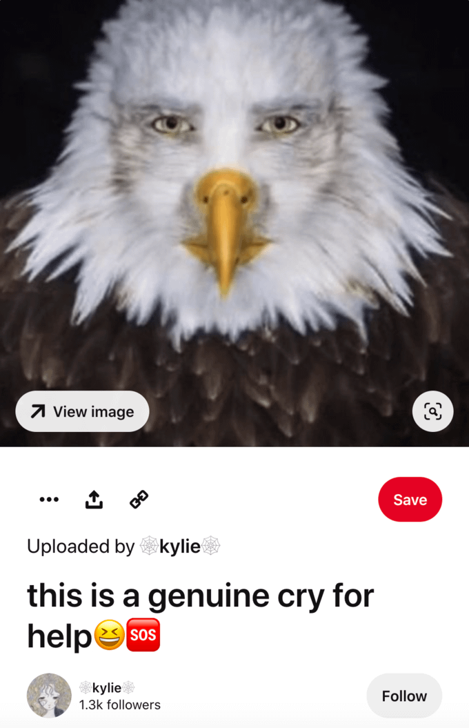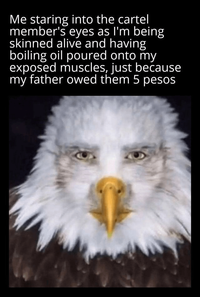C'est en 2022 que ce photomontage d'aigle commence vraiment à être réutilisé par une petite communauté. Des utilisateurs voient en sont regard fixe une forme de souffrance inavouée et l'utilisent pour imager quelques memes.
