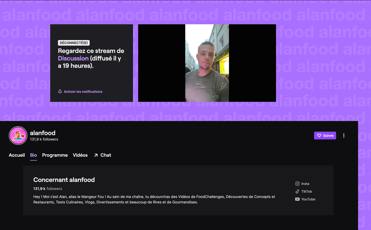 Pour contrer ces accusations qu'il juge trompeuses, Alan a proposé à sa communauté de le rejoindre lors de son tout premier live sur Twitch le dimanche 9 juillet à 20h. Il s'y expliquera et réalisera un défi de dégustation de gigatacos en direct pour prouver qu'il ne triche pas.