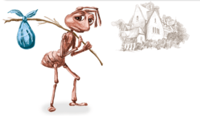 Ici, la fourmi triste est utilisée pour illustrer une situation dans laquelle une personne se voit obligée de partir d'un endroit car elle y est forcée.