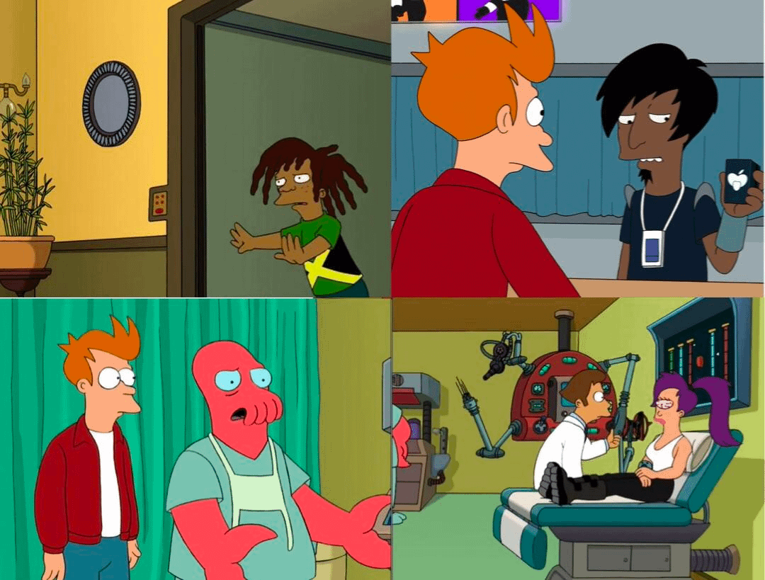 Pour commencer, la scène est reproduite dans des montages à partir d'extraits de séries connues comme Futurama.