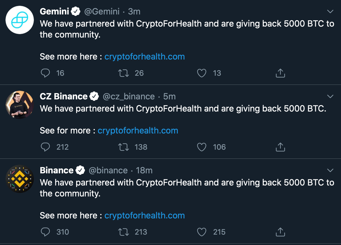 Le 15 juillet 2020, plusieurs profils officiels de personnalités et de marques renommées ont commencé à publier des tweets similaires.