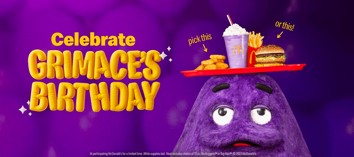 Récemment, Mcdo a lancé une opération promotionnelle aux Etats-Unis : l'anniversaire de Grimace.