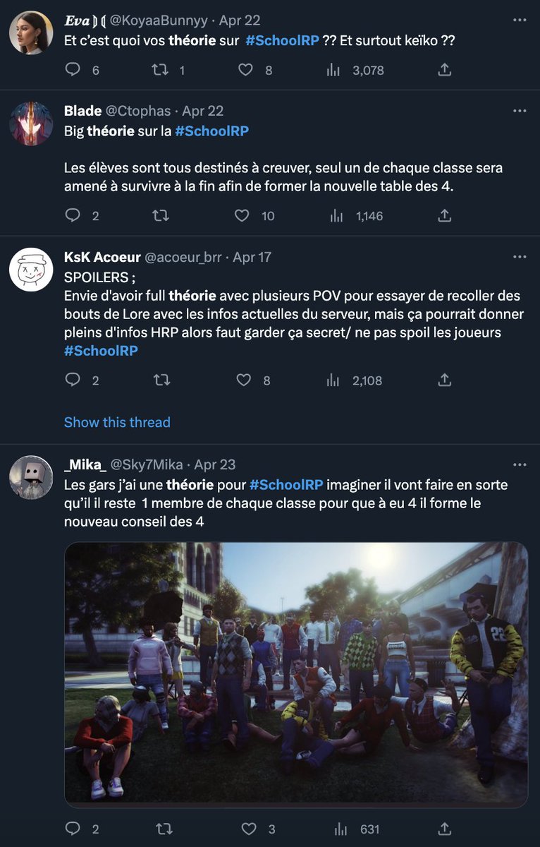 , la School RP prenait fin ce lundi. Après trois semaines de diffusion le constat est sans appel : le roleplay s'affirme encore comme l'un des nouveaux genres narratifs sur lesquels compter. Retour sur cet énorme succès 👇🧵