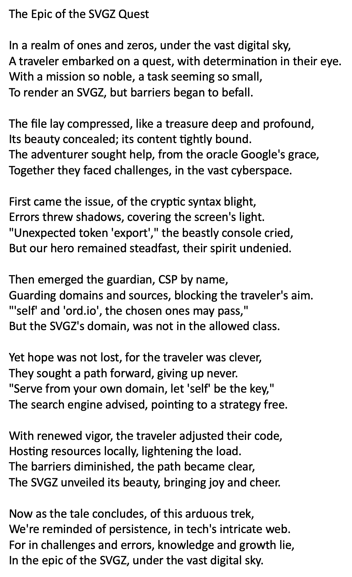 I have also been experimenting with some other interesting capabilities involving SVGZ files and Ordinals, but I'll save that for a future post.