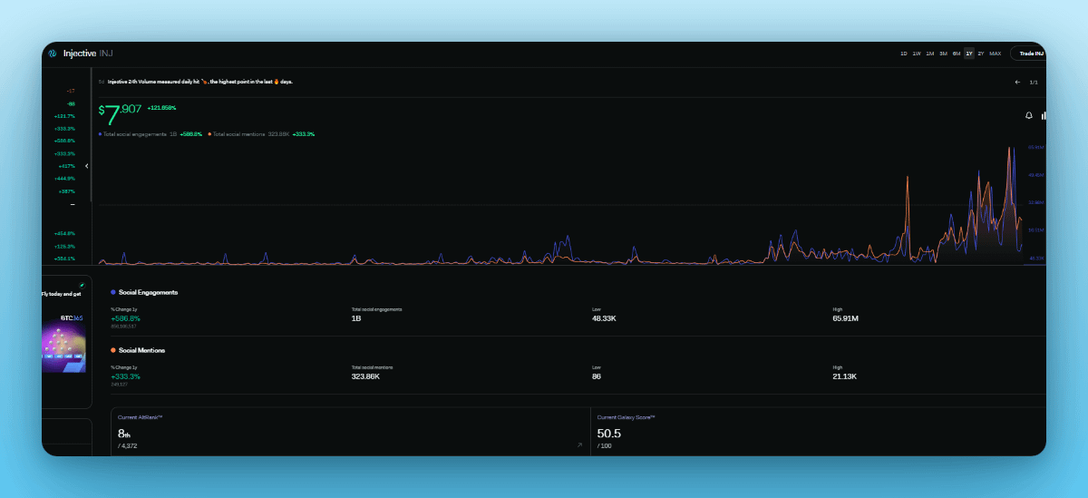• A major decrease in social engagement over several days for 3+ coins related to a narrative usually indicates diminishing interest, signaling that it's time to sell or take profits