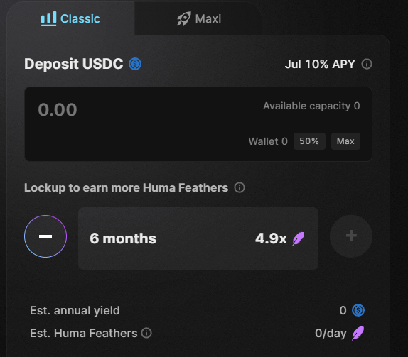 And you can get a 10% APR + Huma Feathers points by depositing USDC into the “Classic” pool with a 6-month lock.