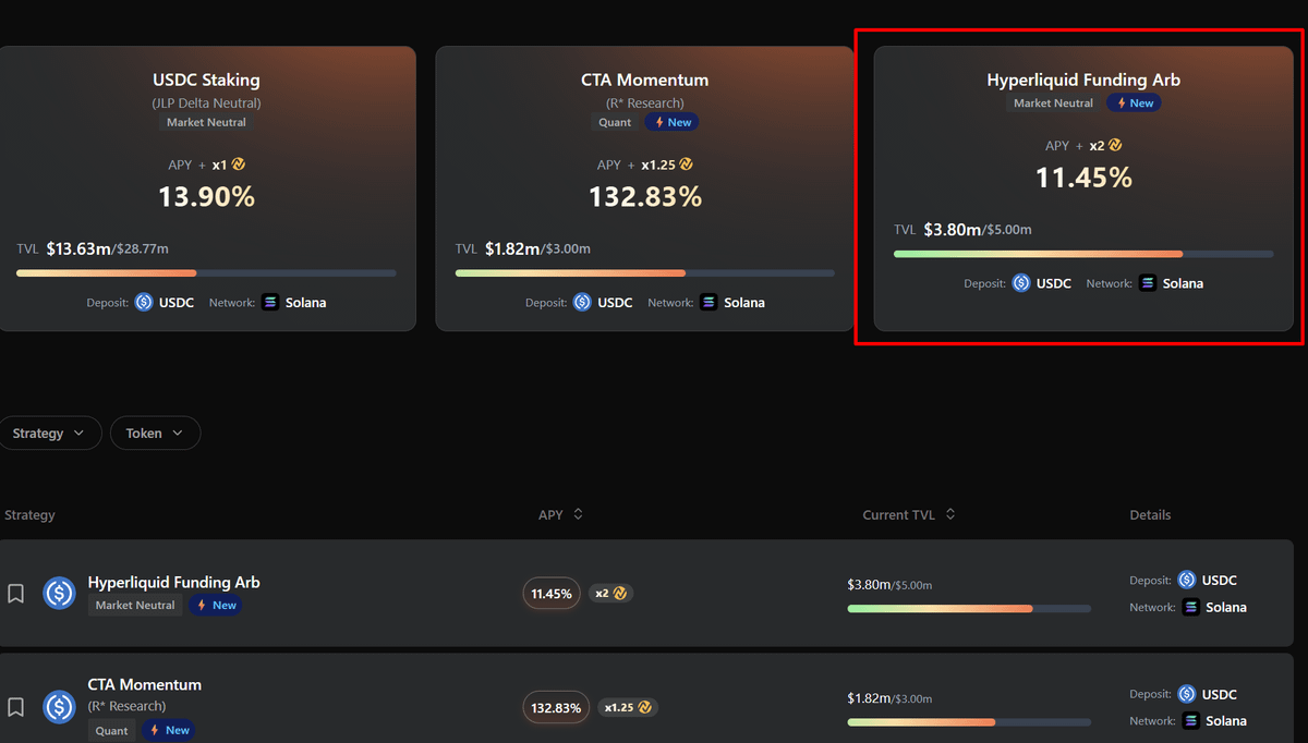 â—† Deposit USDC in "Hyperliquid Funding Arb" vault (a funding rate arbitrage vault)