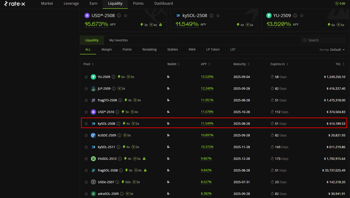 â—†Go to RateX -> Click on "Liquidity" -> kySOL-2508 pool -> Deposit kySOL
