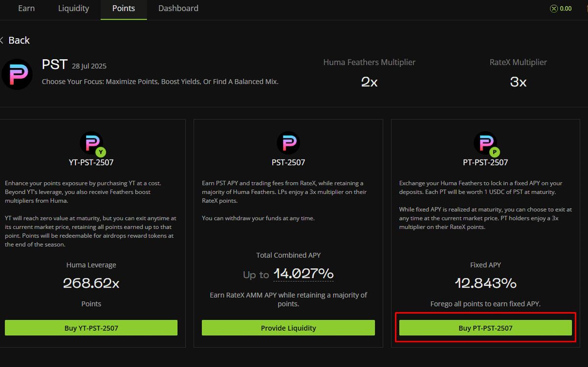 â—† Go to RateX (app.rate-x.io/referral?ref=MLAt7yEV) -> Click on "Points" -> "PST" -> Buy PT-PST-2507
