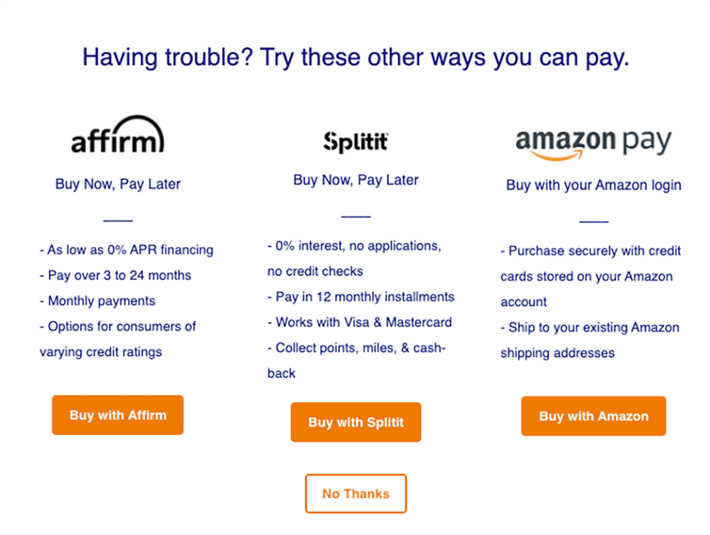 So, you could also push any split payment or BNPL options at this point.