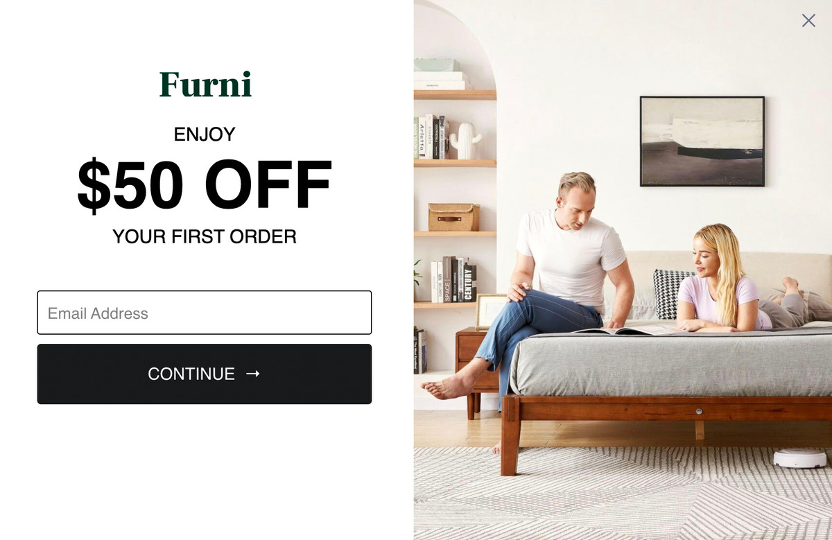 A collection-specific opt-in means the brand knows more about what the shopper is interested inβvaluable data when you have a broad furniture catalog like this.