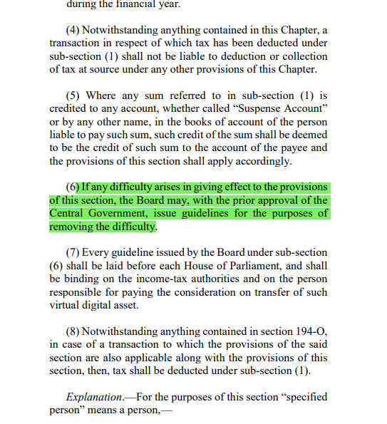 Sec 194S(6) provides IT Dept. to issue guidelines if any part of section cannot be implemented. (Ref: Image).