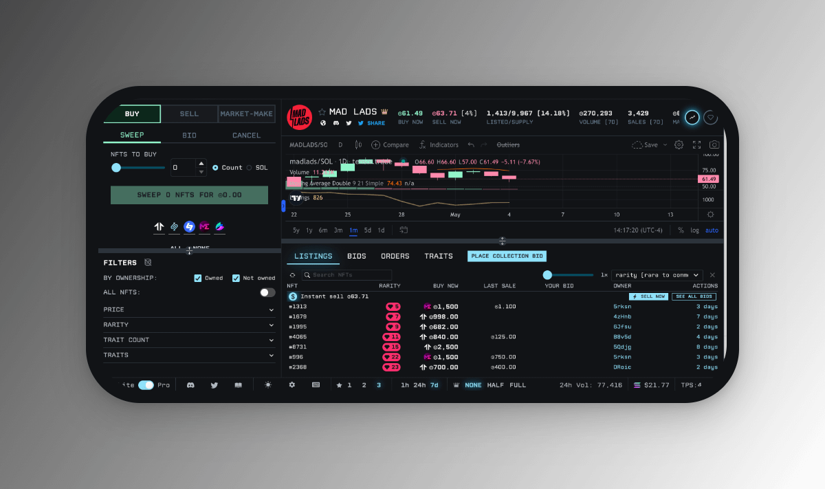 Appx $60m-$100m in NFT/SOL value being traded p2p since inception.