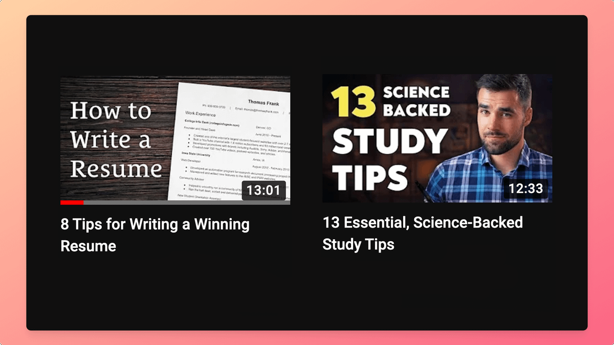Given that focus, a video on crafting a great résumé is going to do a much better job at bringing in an audience that is primed to convert.