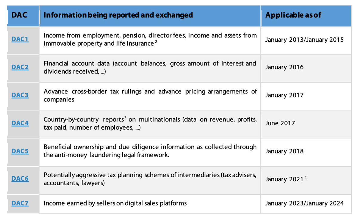 EU tax officials share information through the DAC, with DAC8 being the newest change.