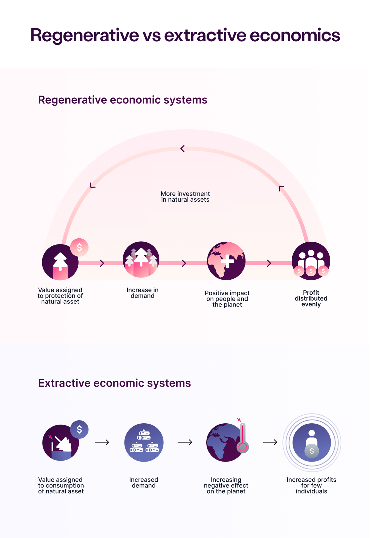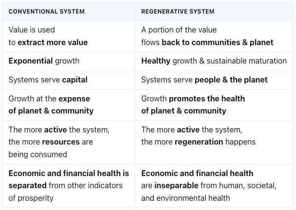Let's do a quick comparison of conventional and regenerative economic systems: