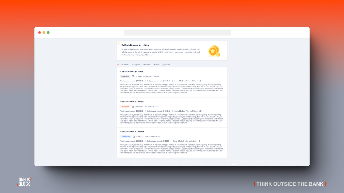 Use DeBank Hi for a chance to trigger random bonus rewards on messages.