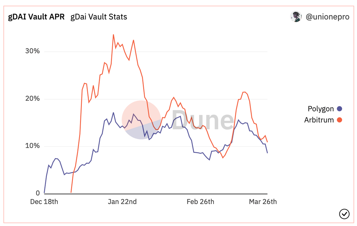 你會知道長期平均下來,APR大約在20-30%之間 gDAI歷史較短