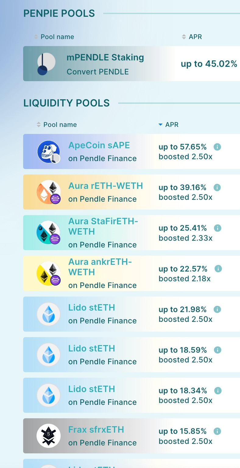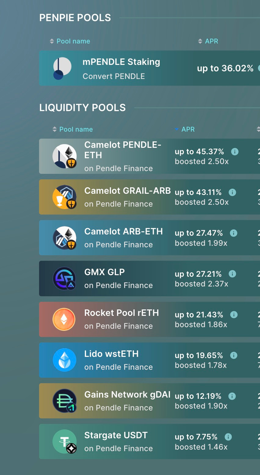 (续mPENDLE) 目前质押mPENDLE的APR为36-45% 🔥 Eth: 27%