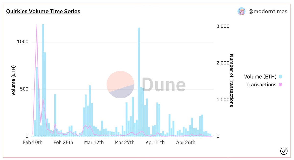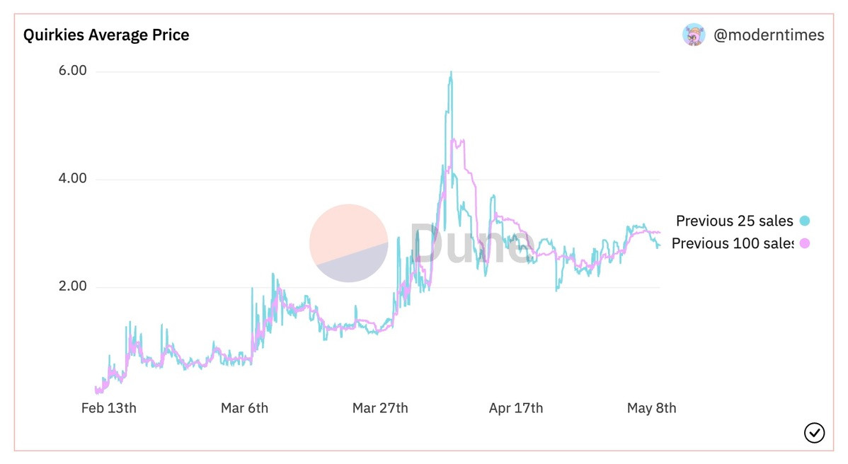 Floor price is currently 2.3 eth, with the most expensive Quirkie recently selling for 55 eth.