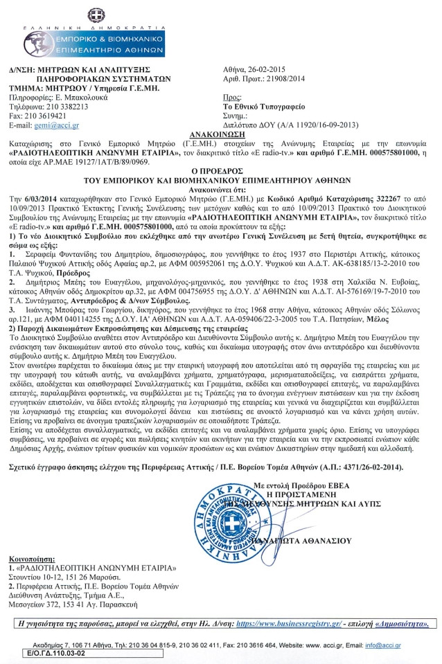 Το όνομά κτύπησε καμπανάκι. Ψάχνοντας λοιπόν στο εμπορικό επιμελητήριο βρήκαμε τα πλήρη στοιχεία της μεταβίβασης.