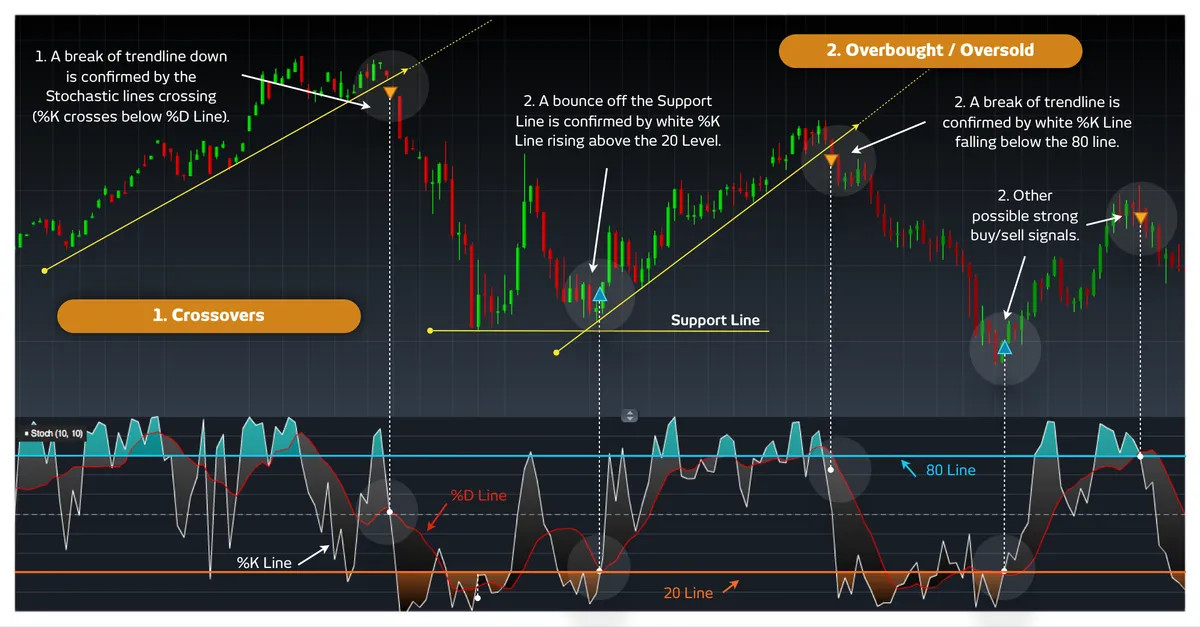 The stochastic oscillator is another tool for identifying potential trend reversals, particularly in overbought and oversold conditions.