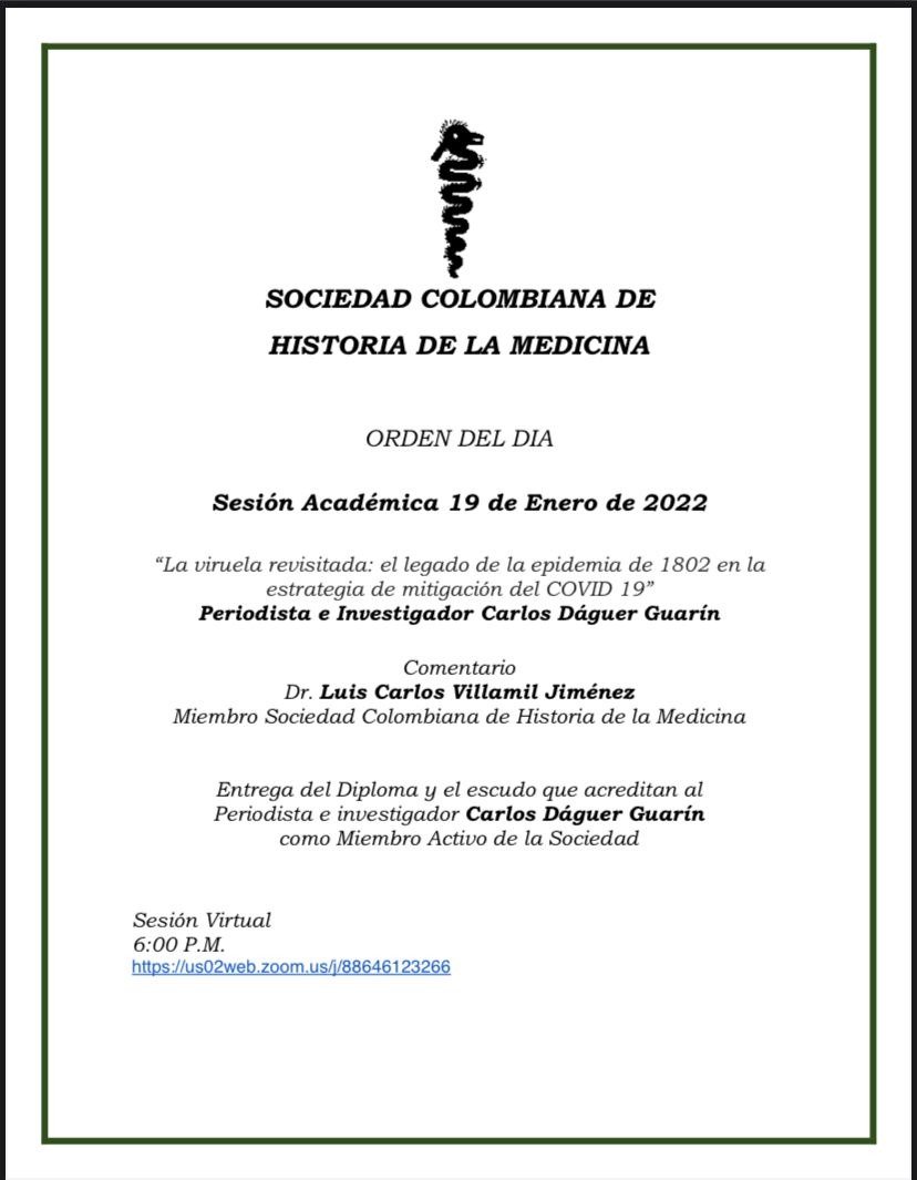 Pero aprovecho para promover esta charla que estará dando el periodista e investigador @CarlosDguer sobre lecciones #viruela y #COVID mañana 19 enero 6pm.