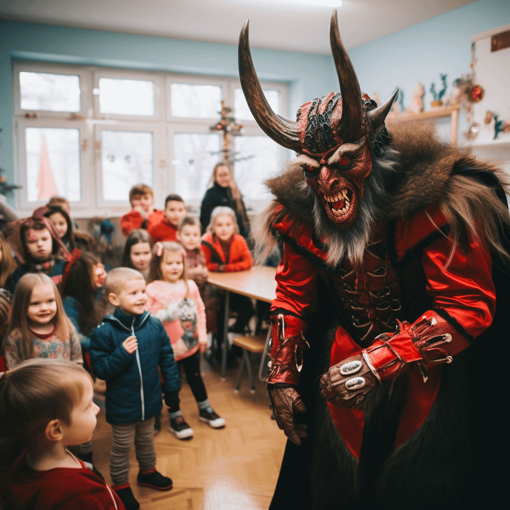 Nikolaus also visits Kindergardens and Schools - but he doesn't come alone! "Knecht Ruprecht" or "Krampus" joins him. He is a frightening figure, reminding the naughty kids to behave. 😈