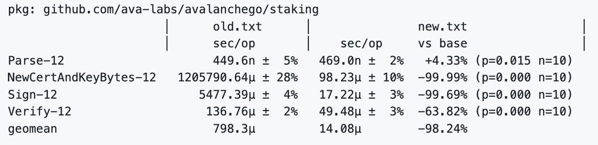 Durango 6 defaults to using secp256r1 (P-256) staking keys instead of RSA 4096. This change dramatically reduces the size of the staking key, the staking key signature, and the time required to generate, sign, and verify it.