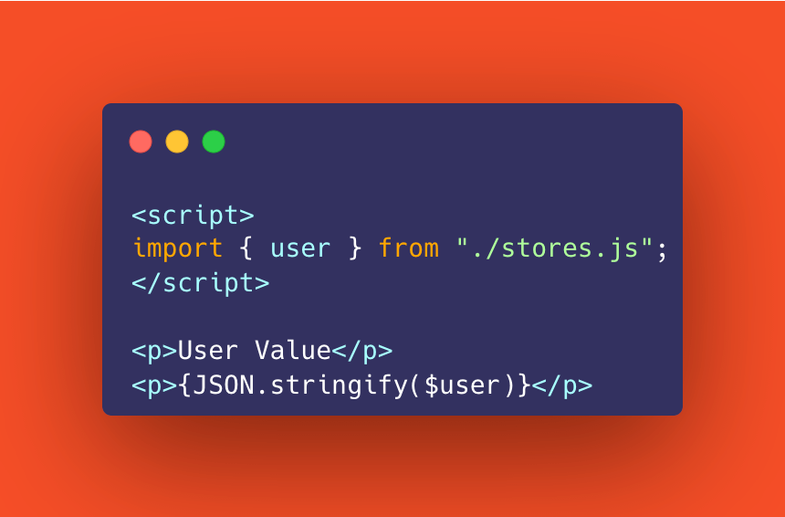 Any component in our app can import user store and read whatever the value is with "$". You can even set it or bind to it like any normal variable making them uber convenient.