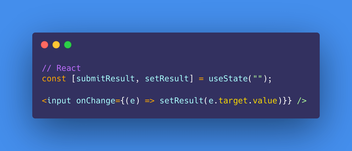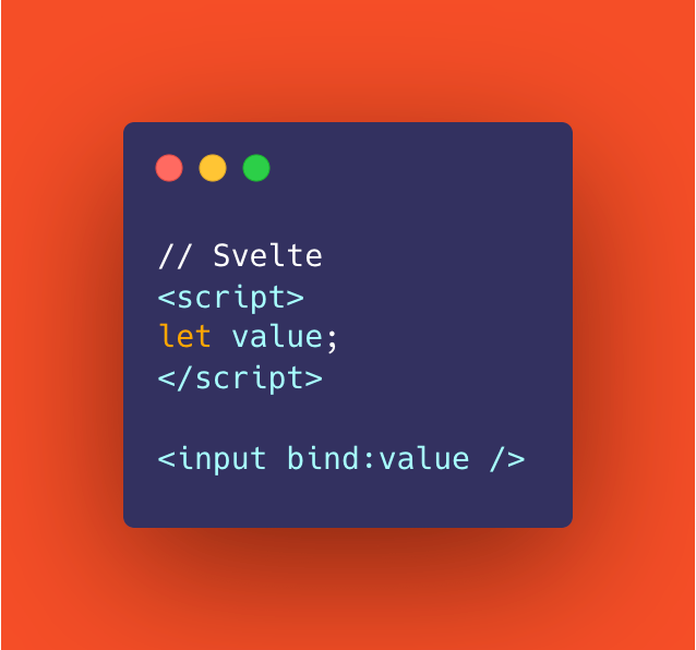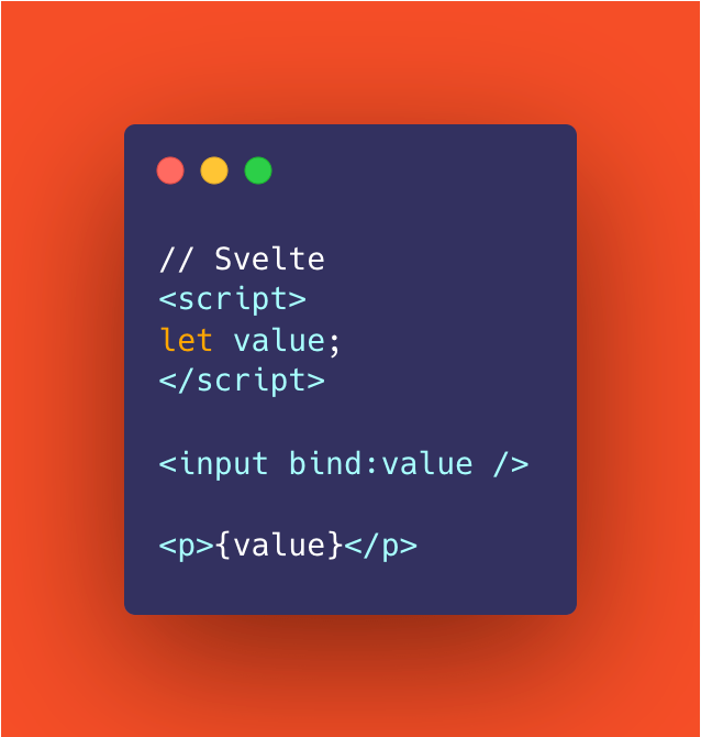 In the above example, whenever a user adds text to that input field, it will automatically be assigned to the "value" variable. And notice the reference to {value} in our template? That <p> tag will contain the <input> text and auto update whenever it changes.