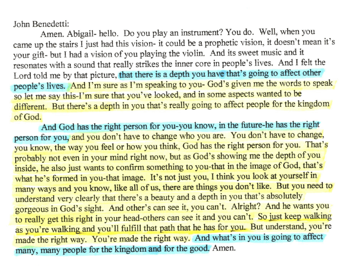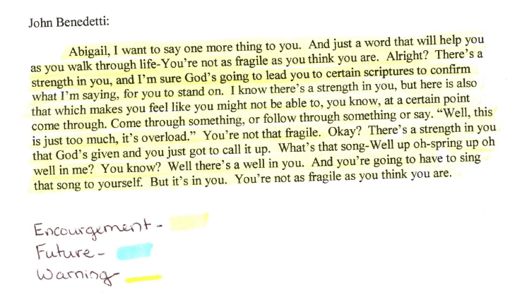 I was instructed to transcribe the audio from the cassette tape and highlight the different portions of the prophecy, so I dutifully obeyed.
