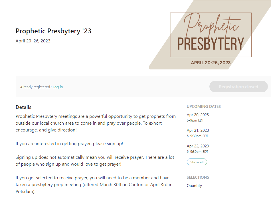 In my childhood cult, presbytery meant one thing: an annual multi-day event in which traveling prophets would come to town and deliver prophetic words over the favored few.