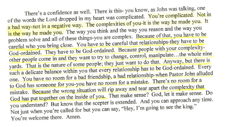 As it turned out, I didn't have much to worry about. The "prophetic word" was 75% vague platitudes and 25% standard guesses about a young woman raised at CFC.