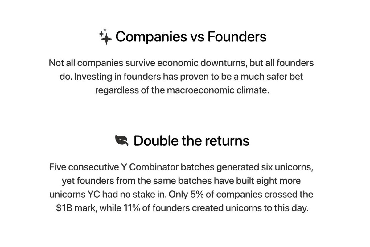 Investing in the founders is indeed less risky than investing in the companies—they die less often, but win just as much 💀