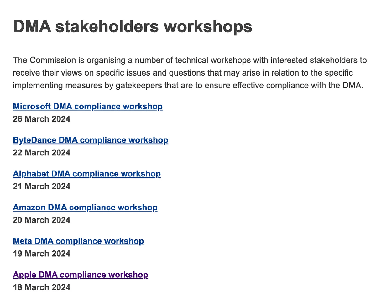 The EU's next step in "enforcement" is a series of workshops where "stakeholders" (i.e. complainant companies) will inevitably tell the EU that the platforms' compliance plans are inadequate.