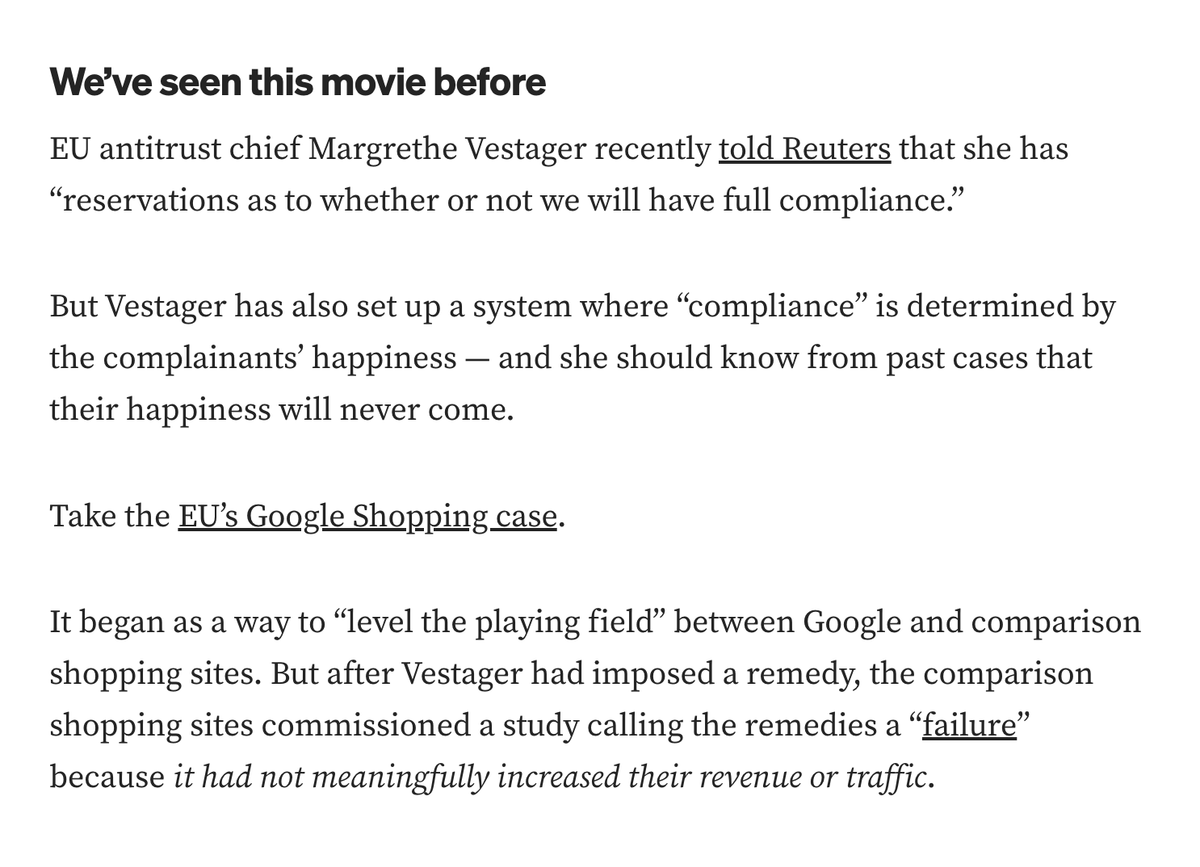 The crazy part here is that @vestager has seen this movie before, in both the EU's Google Shopping and Android cases.