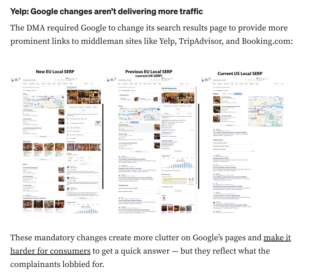 - Yelp is upset that Google's changes aren't delivering more traffic