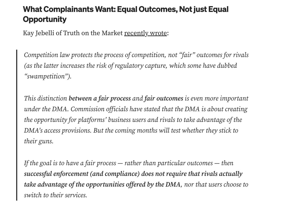 So, prepare yourself for months - maybe years - of headlines of the complainants saying that the DMA "isn't working" - because it's not ensuring "equal outcomes" for them.