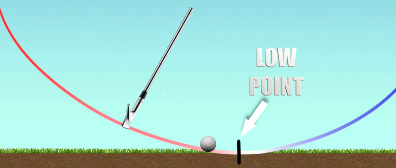 Low point refers to the lowest point of the club travel, assuming no ball/ground contact.