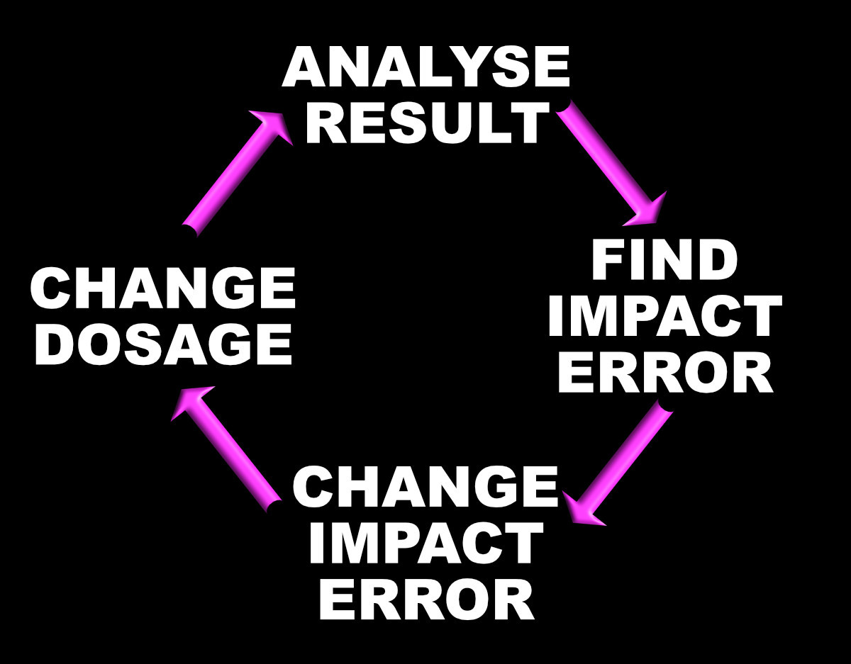 Then, on your next swing you drop JUST 1/4 inch deeper (or 2 grooves).