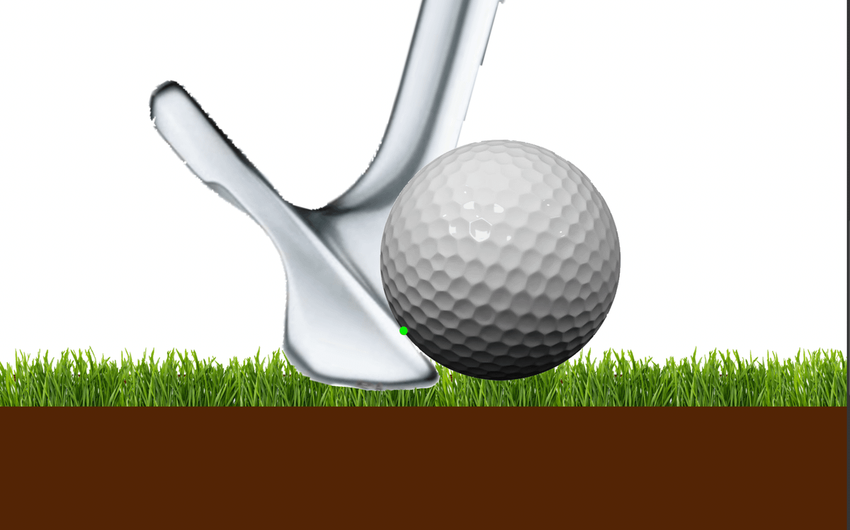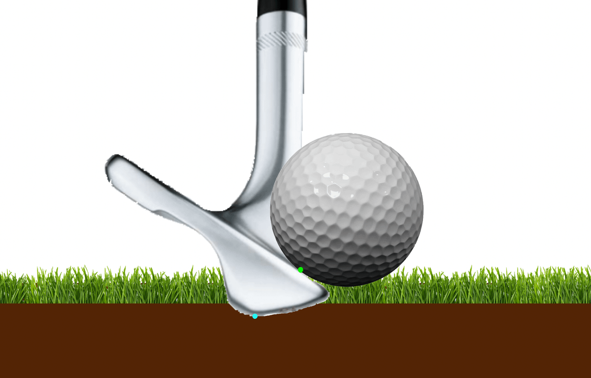 With 15 deg of shaft lean/loft reduction, we can now strike the second groove (green dot) on the face with a club that has much greater clearance from the ground