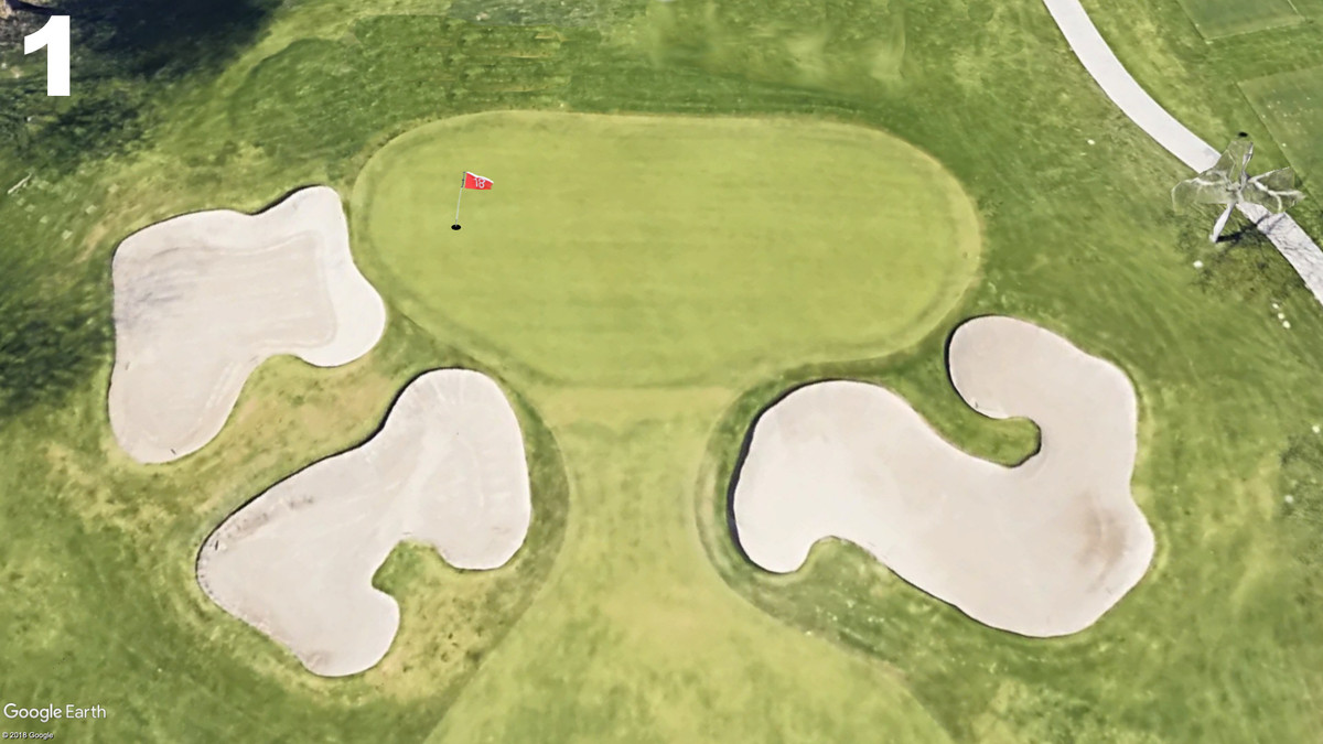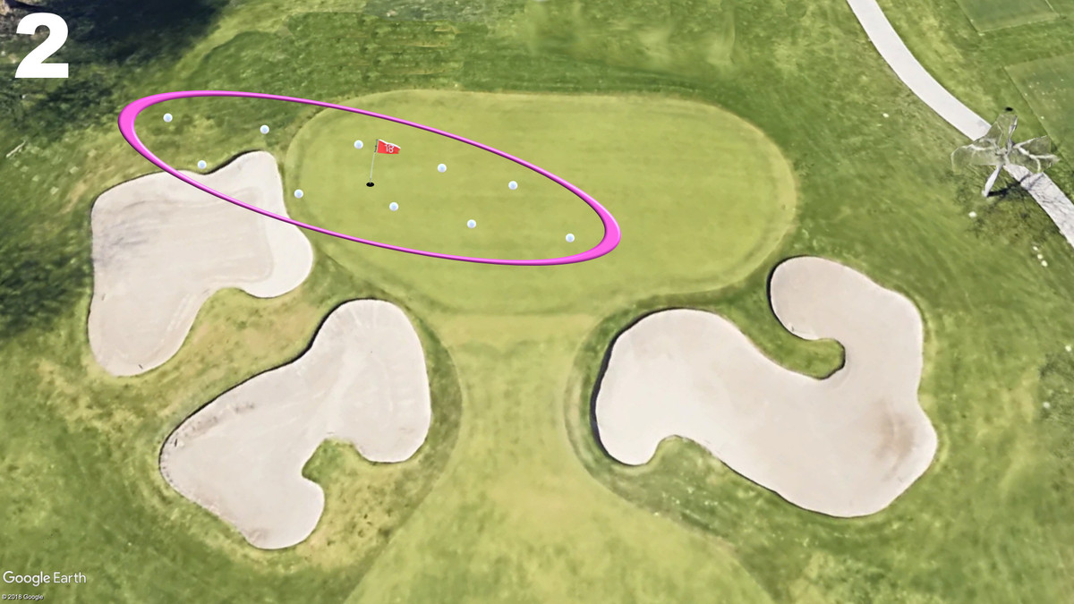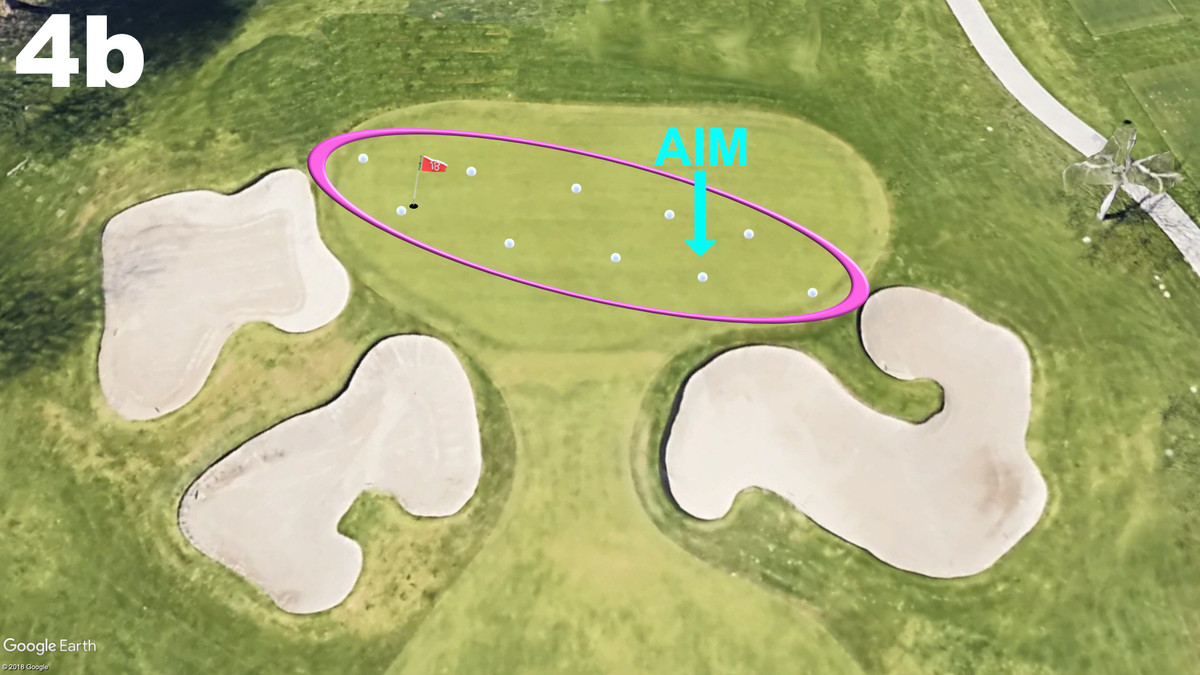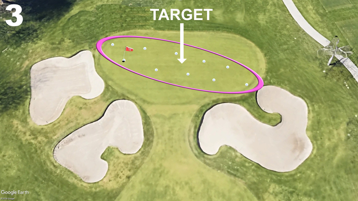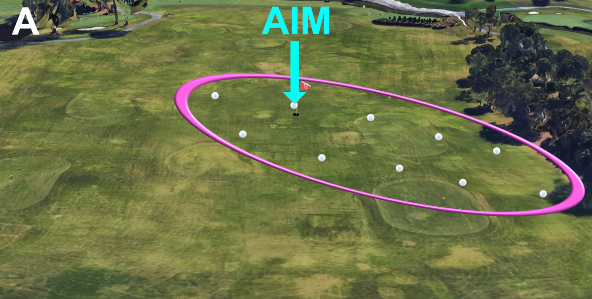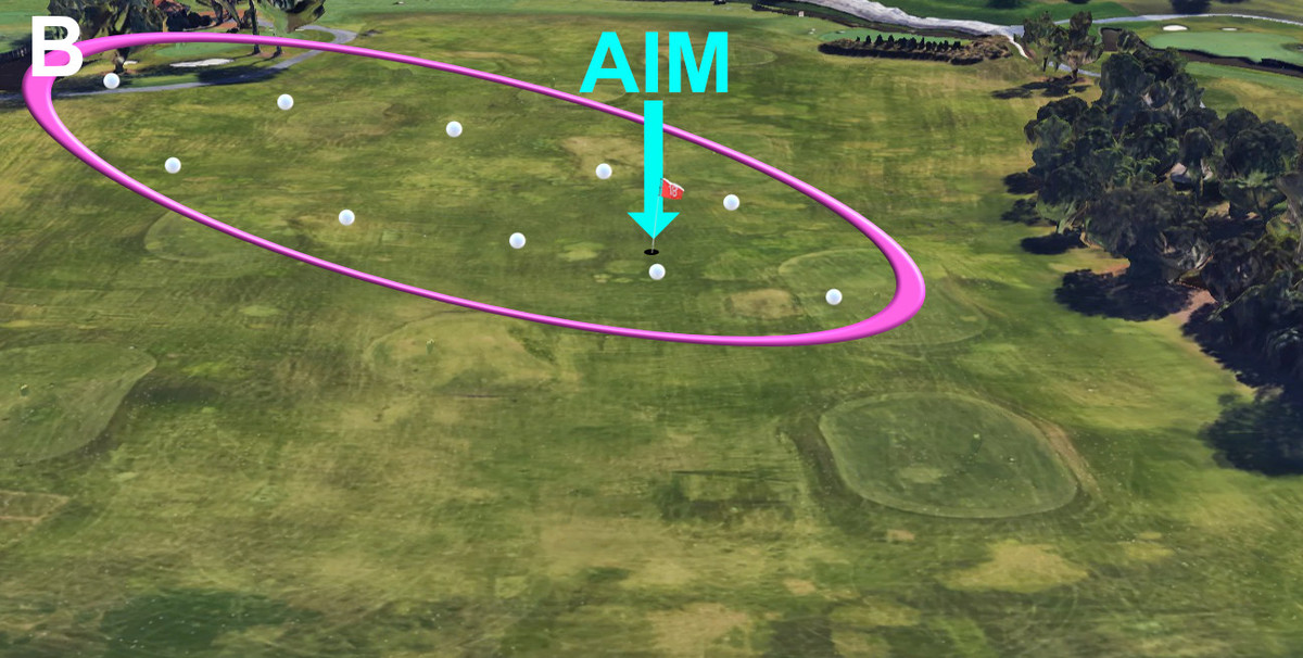 If we simply adjusted the target to (in this example) the middle of the green, more of our predicted shot pattern would hit the green.