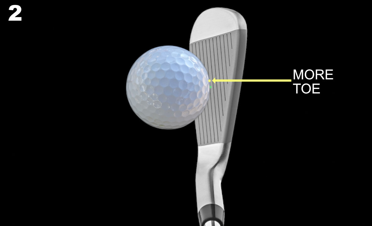 If, all else being equal, we presented the face more CLOSED, the strike moves more towards the TOE.